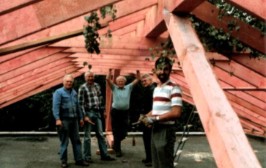 Das war wieder ein großes Stück Arbeit, denn es sollte ja nicht nur ein Raum entstehen, sondern auch eine Küche und natürlich Toiletten. Später wurde noch eine Gasheizung eingebaut, die Glasbausteine durch Fenster ersetzt und ein Anbau als Lagerraum errichtet.